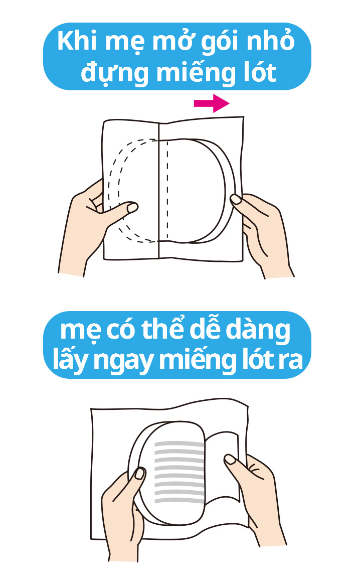 1. Mở túi có miếng sản phẩm đã được gập sẵn.