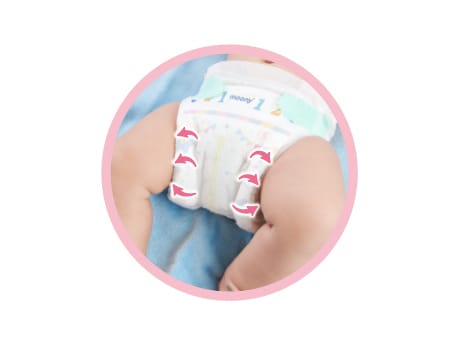 Với "Màng thun co giãn vừa vặn" và "Màng thun co giãn linh hoạt", miếng tã sẽ thật mềm mại mà vẫn vừa vặn chống tràn hiệu quả.