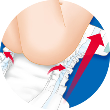 Thiết kế tã tự động ôm vừa vặn cơ thể bé, giúp mẹ dễ dàng mặc tã cho bé mà không cần phải điều chỉnh để ngăn tràn