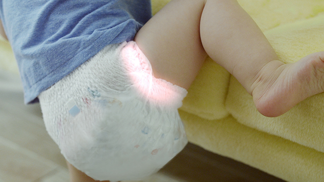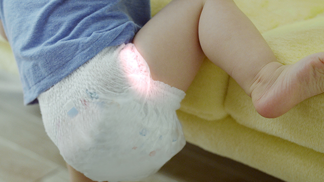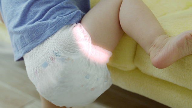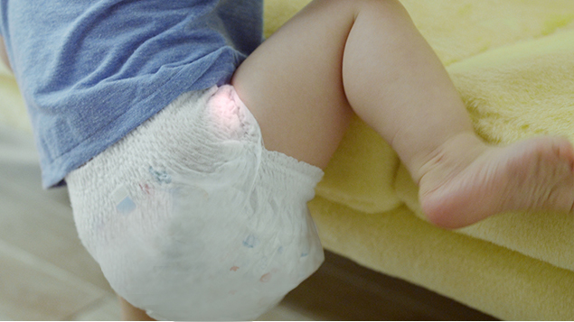 Khi bé tiểu, vạch chỉ thị sẽ chuyển sang màu xanh lam, điều này sẽ giúp dễ dàng biết được thời điểm cần thay tã cho bé